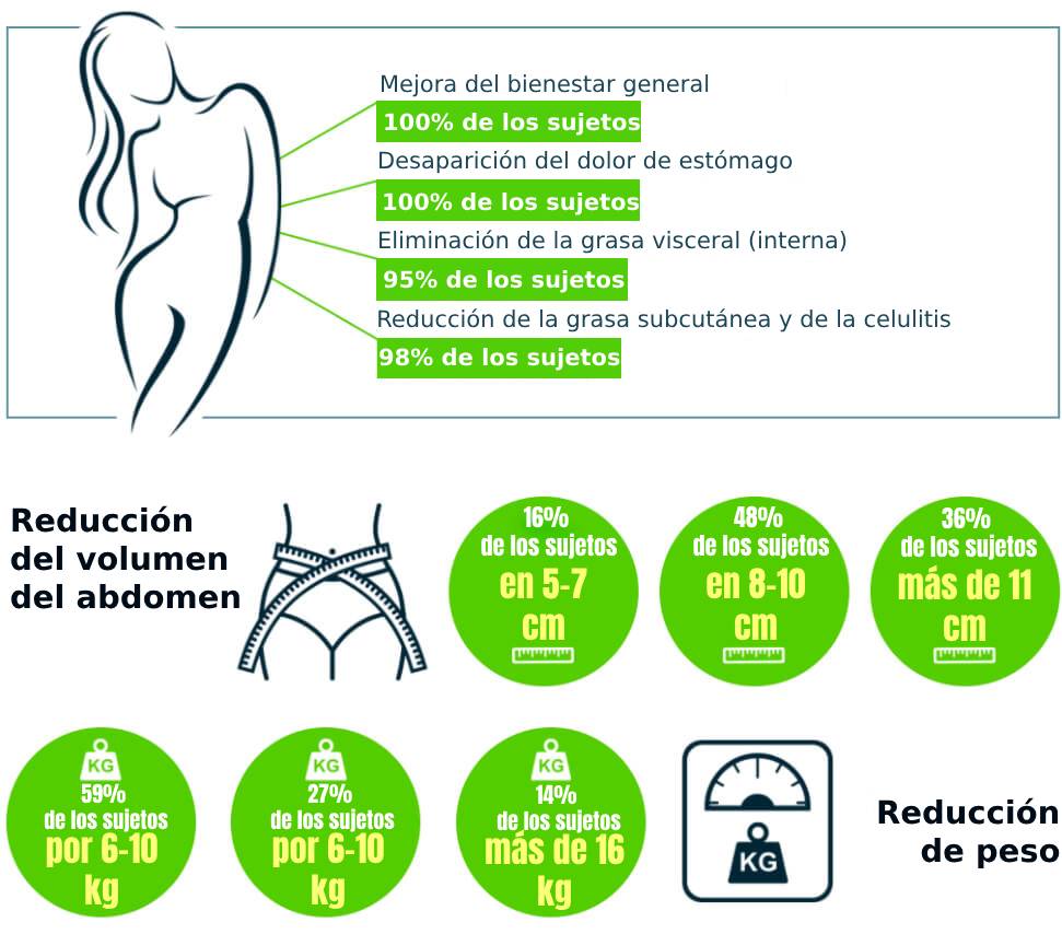¡Hacia la mitad del ciclo pesarás 90 kg, y finalmente tu peso será 70 kg! Te garantizamos que empezarás a adelgazar a un ritmo seguro sin dañar la salud. Los efectos están confirmados fuera de toda duda por los ensayos clínicos realizados con la participación de 27000 mujeres y hombres de 18-75 años.